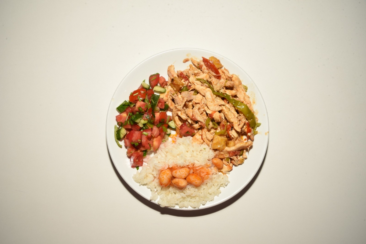 “Et ve tavuk yemeklerimiz, pilav ve salata eşliğinde misafirlerimize sunulmaktadır.”